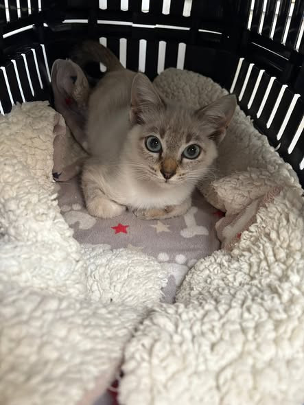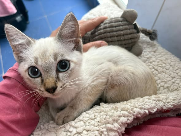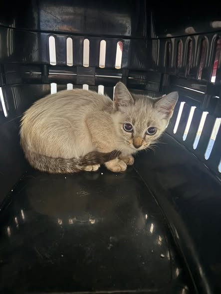 Mientras hacíamos CER (captura, esterilización y retorno) en una de las colonias del pueblo, entro en la jaula este chiquitín de unos dos meses y medio de edad.